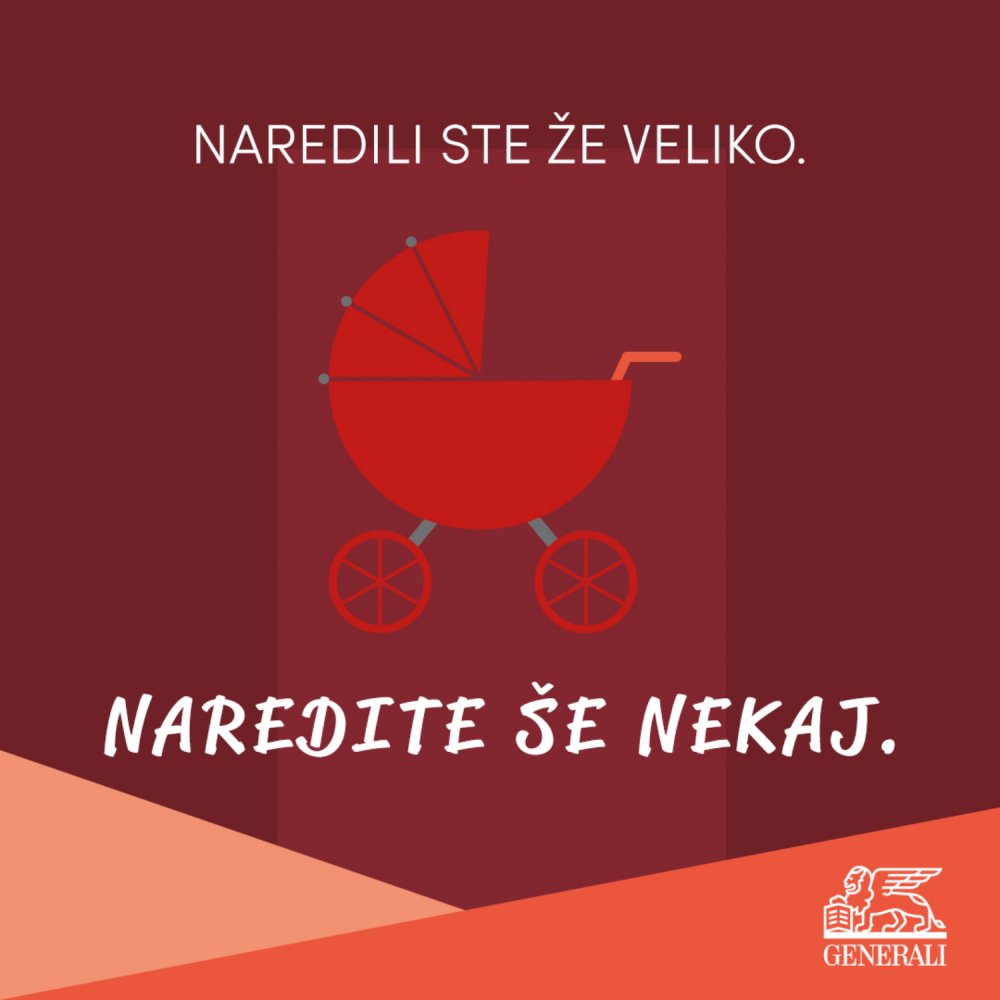Kot vseživljenjski partner Generali svetuje, da za brezskrbno uživanje v najlepšem obdobju življenja poskrbite za osnovno zaščito družine. Nudita jo klasično življenjsko in domsko zavarovanje. Naložbeno življenjsko zavarovanje vam bo kasneje pomagalo pri lažjem šolanju otrok ali zagotovilo dodatno pokojnino. Specialisti z asistenco pa vam stojijo ob strani v primeru specialističnih pregledov, diagnostičnih preiskav, operacij in fizioterapij. Poskrbite za varnost in brezskrbno prihodnost svoje družine. Varujte zadovoljne trenutke, mi vam zavarujemo ostalo - www.generali.si.