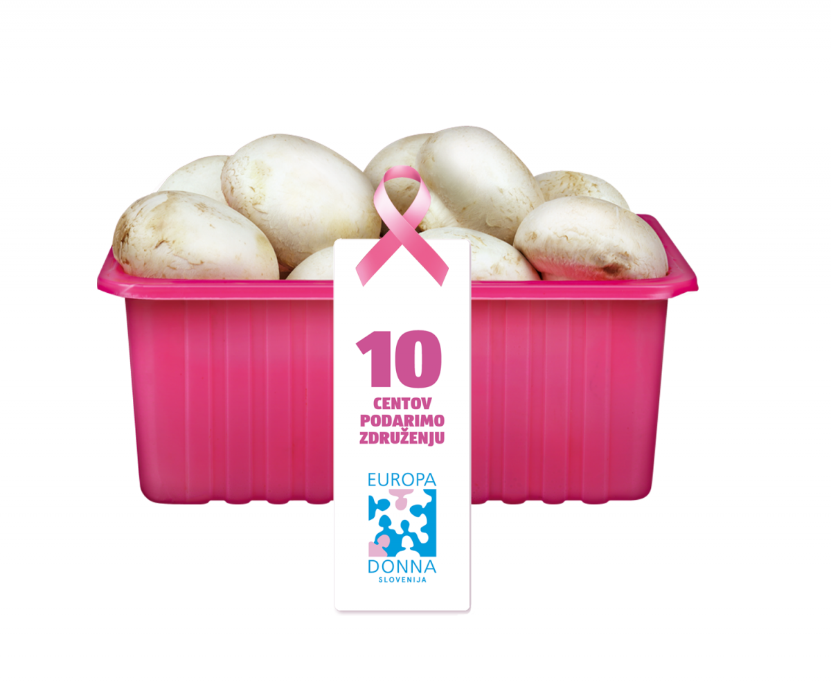 Rak dojk je najpogostejša oblika raka pri ženskah v Sloveniji, saj na leto zboli okoli 1400 žensk, prizadene pa lahko tudi moške. Pri HOFERju bodo v mesecu oktobru, ki je mednarodni mesec osveščanja o raku dojk, od vsakega prodanega paketa šampinjonov v roza embalaži namenili 10 centov preventivnim programom Združenja Europa Donna Slovenija.
