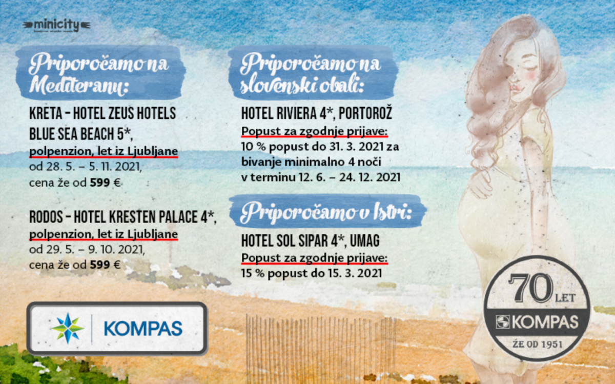 Pri turistični agenciji Kompas so za vas skrbno pripravili super ponudbe za oddih. Preglejte, kaj vse vam priporočajo na Mediteranu, slovenski obali in v Istri. Na voljo so številne ugodnosti.